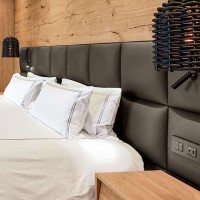 The MINIFLAT collection consists of two models: one with a round base and another built-in, without base nor switch. The structures are made of white or black textured painted iron. The light source is a non-dimmable integrated LED Cree 3W 3000K 260lm 30º CRI>80. It always includes the corresponding 90-264V 2.5-4.5Vdc 700mA driver, which in the case of a round base is housed inside the base, and in the case of the embedded version it must be installed hidden behind the headboard of the bed.