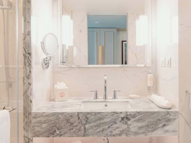 Proyecto: iluminación de los baños del Legacy Hotel Cascais, Curio Collection By Hilton. El establecimiento es un hotel de 4 estrellas ubicado en la población de Cascáis (Portugal) conocida por su rica historia y por sus bonitas playas. En esta ocasión y a petición del comprador, se desarrolló a propósito para este proyecto un aplique customizado basado en nuestro pie de salón Totem I.